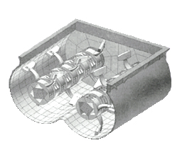 物料混合是指對一種或者多種的物料進行均勻化作業(yè),進而減小其粒度、密度、溫度及塑性等分布的不均勻性,是一種常見的物料處理方法。不同行業(yè),由于原料種類、特性、用途及后續(xù)處理方法不同,因而所選用的混合設備也各不相同。雙軸臥式葉片混合機采用間歇排料方式,其結構采用兩根上面布置有攪拌葉片的攪拌軸,攪拌葉片在其旋轉過程中對物料進行強制混合并使其均勻化。該設備非常適用于粉狀、顆粒狀及其和液體混合后的物料的混合和均化。